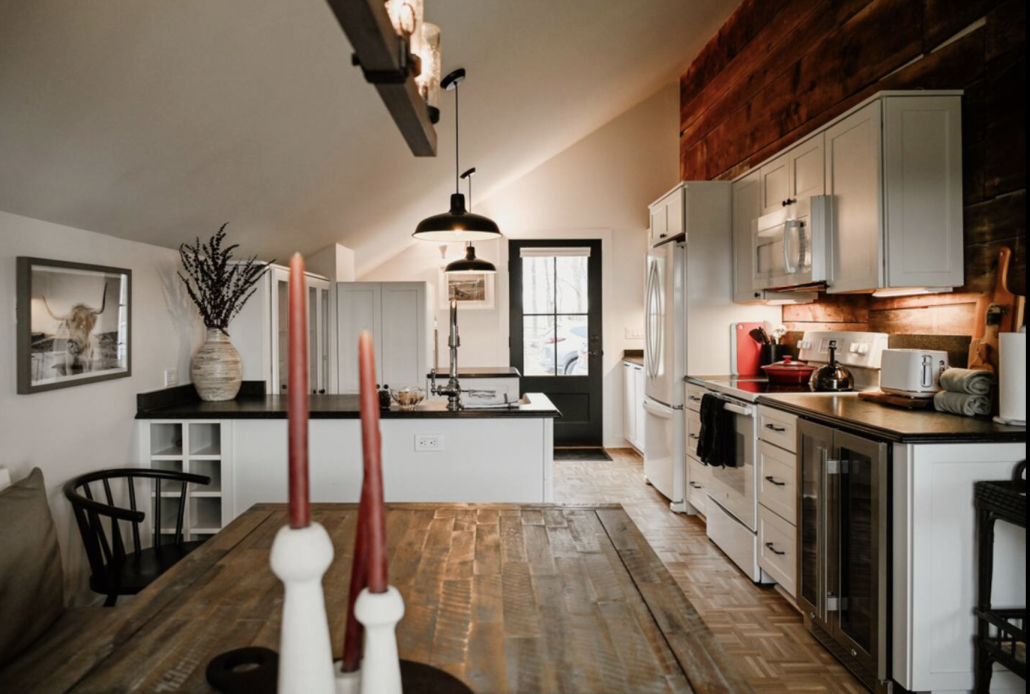 Set on 180 acres of rolling vineyards with Scottish Highlander cows and countryside views, The Granary offers a relaxed, farmhouse setting just minutes from lake beaches, local wineries, and Suttons Bay. With three bedrooms, two baths, and space for up to eight guests, it’s ideal for families or friends who want authentic farmland charm, wide-open skies, and modern comforts while exploring Leelanau’s outdoor adventures and wine country.